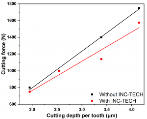e. Reduced friction coefficient and heat of cutting